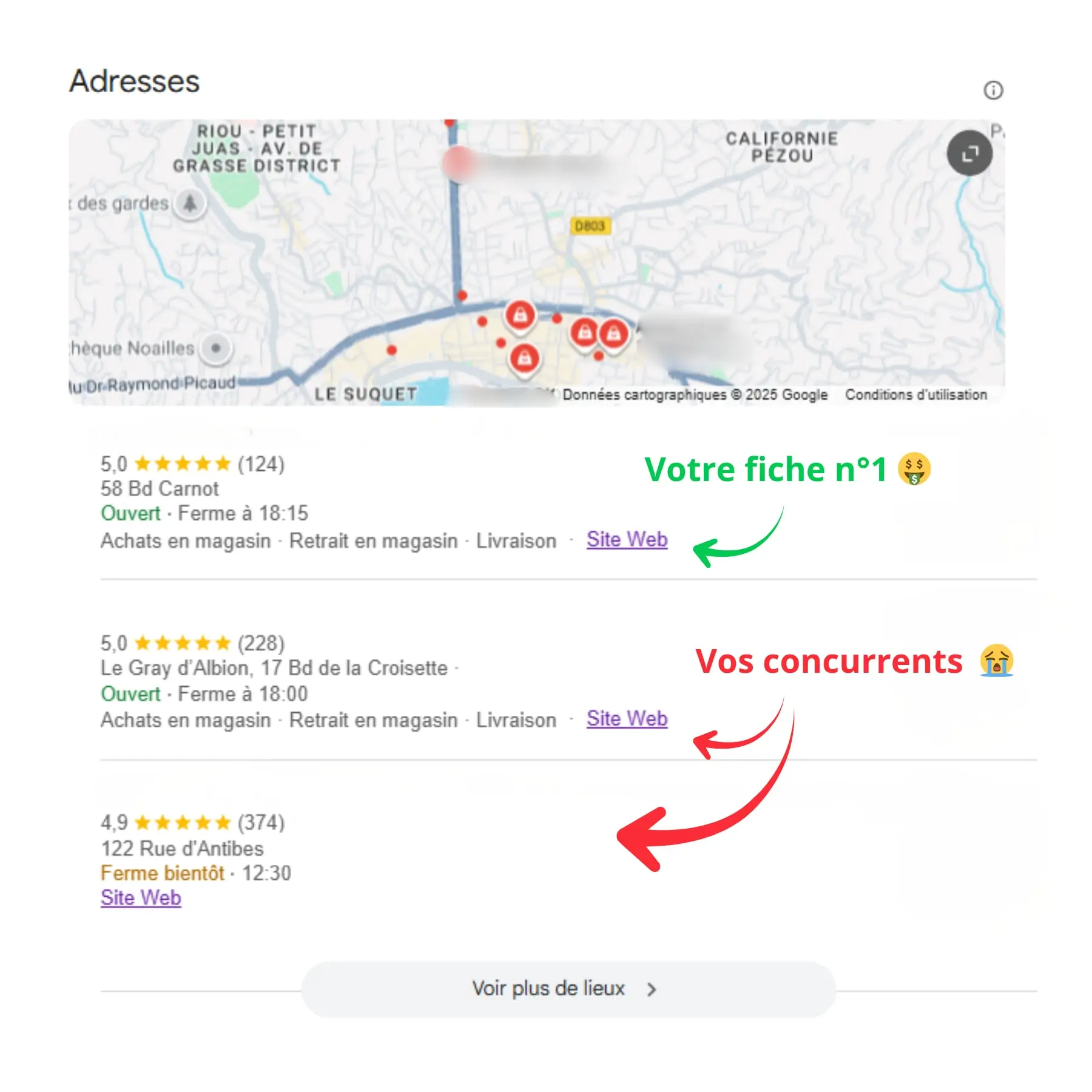 Et plus de 50 % des clients appellent ou visitent dans les 24h après avoir vu une fiche locale bien optimisée.